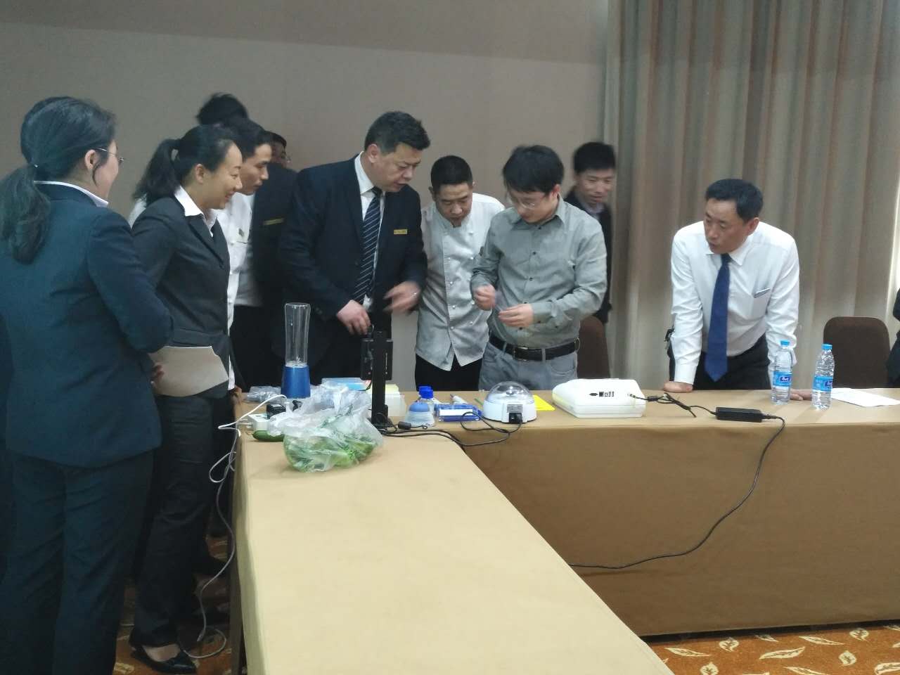 為進一步加強酒店食品安全的自檢自控能力,4月19日下午,云泉山莊邀請國內(nèi)最大的安檢設備生產(chǎn)機構(gòu)清華同方威視的專家,講解了當前食品安全形勢、食品安全檢測技術(shù)及質(zhì)量控制等熱點問題,并現(xiàn)場操作RT5000食品安全快速檢測儀對食材的檢測方法。