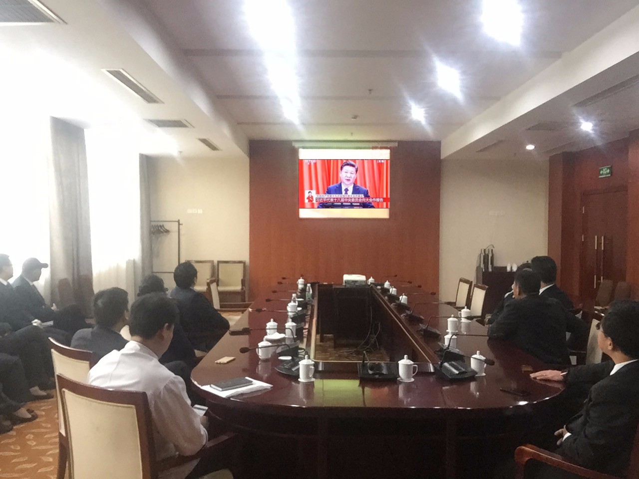 10月18日上午9時(shí),中國(guó)共產(chǎn)黨第十九次全國(guó)代表大會(huì)在人民大會(huì)堂隆重召開(kāi)。云泉山莊黨支部組織全體黨員、經(jīng)理助理以上管理人員集中收看十九大開(kāi)幕會(huì)。