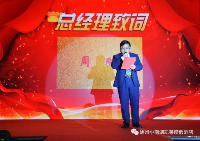 2月11日,國盛酒店2017年度表彰大會(huì)在小南湖廳召開。會(huì)上,國盛酒店總經(jīng)理周剛發(fā)表新年致辭。